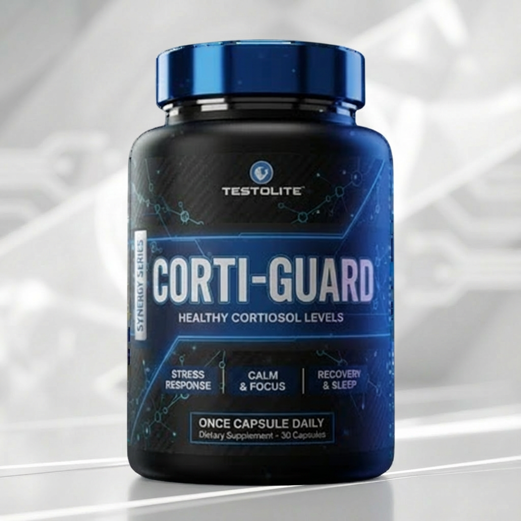 Learn MoreWhen you're stressed, cortisol tells your brain to shut down testosterone production. Corti-Guard brings cortisol back to healthy levels—so stress stops crushing your results. Better sleep, calmer focus, faster recovery, and testosterone that stays elevated instead of getting wiped out by daily pressure. This is how you take back control from stress.